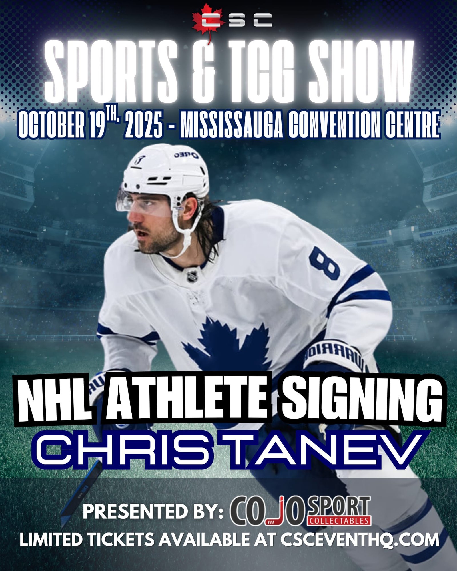 We are excited to announce that Chris Tanev will be signing at the CSC trade show at the Mississauga Convention Centre. This unique opportunity affords fans the rare chance to meet the legendary hockey player in person.